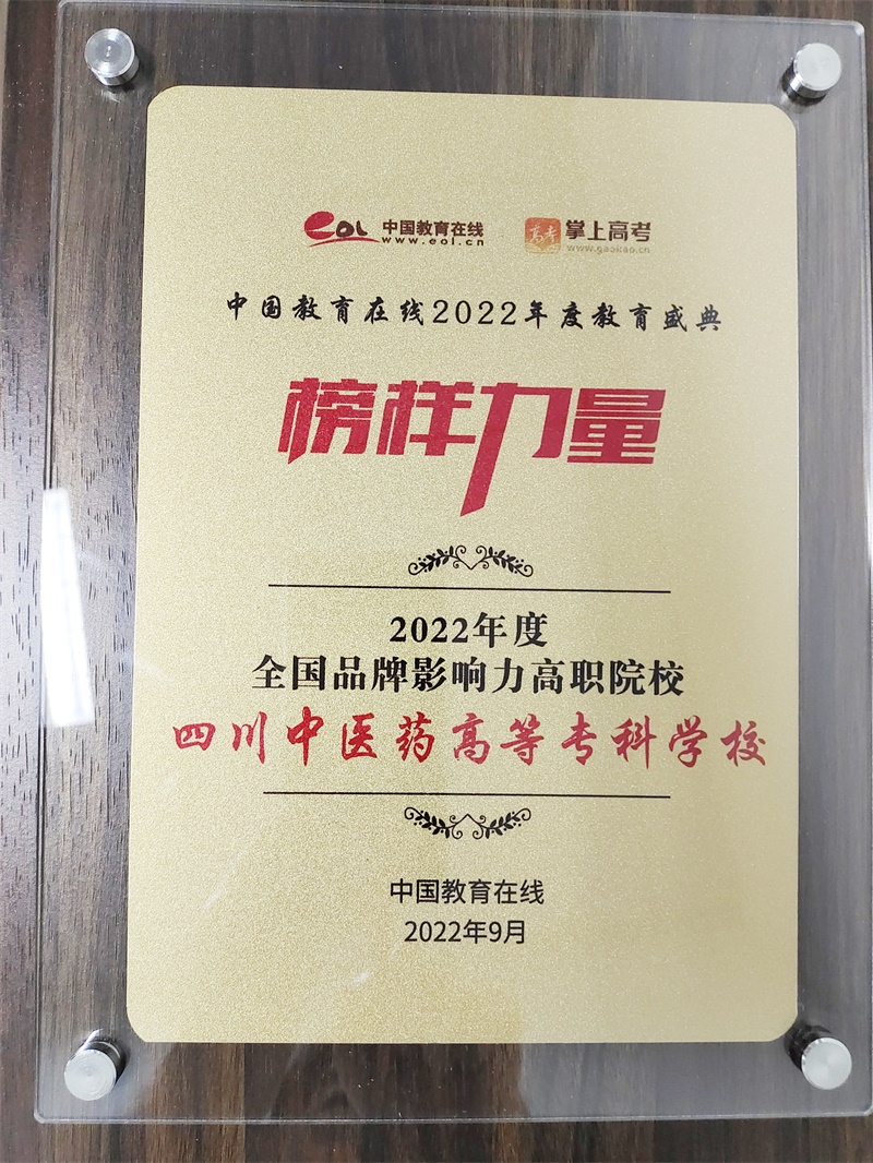 近日,中国教育在线“榜样力量·2022年度教育盛典”评选获奖名单揭晓,四川中医药高等专科学校荣获“2022年度全国品牌影响力高职院校”。