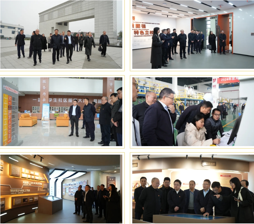 12月3日上午,受四川化工职业技术学院邀请,江阳城建职业学院理事长、校长吴振华带队,党委书记蒋和平,党委副书记、执行校长刘玉增,党委委员、副校长吴炎龙,党委副书记、学生工作部部长徐世银,副校长、教务处处长秦庆礼,副校长任新红、谭建鑫等领导前往四川化工职业技术学院交流学习。
