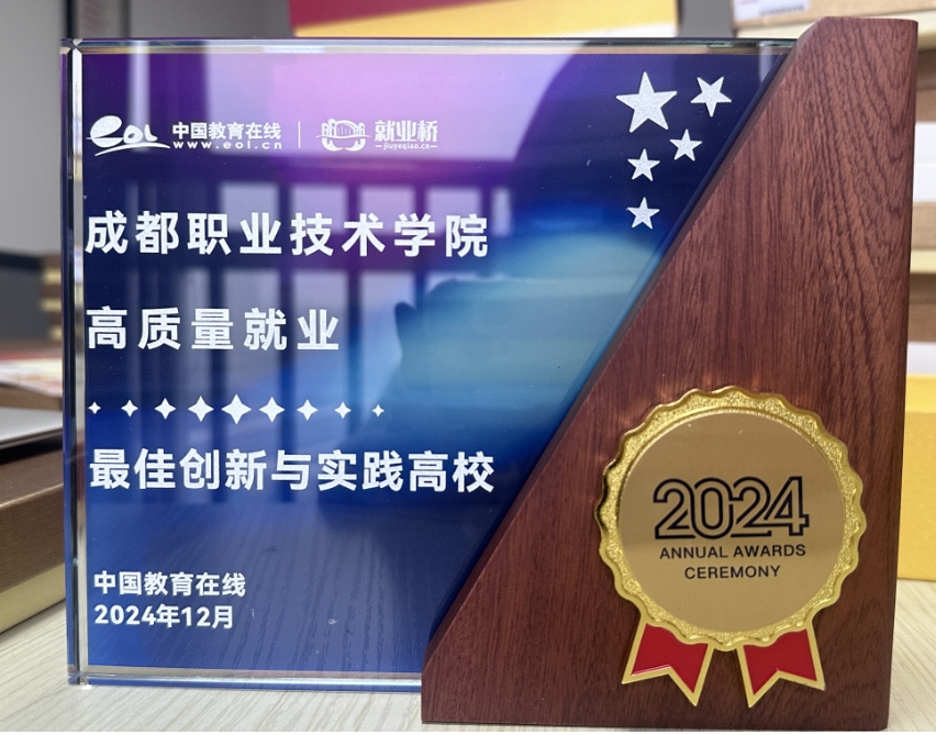 为深入贯彻党中央、国务院“稳就业”“保就业”决策部署,挖掘就业工作典型,中国教育在线举办“高质量就业”2024年度教育盛典活动,表彰在就业工作中表现突出的高等院校,推动就业工作不断迈上新台阶。成都职业技术学院因其对就业市场的深刻理解和显著贡献,以及在培养高素质人才方面所取得的杰出成就和广泛影响,被授予“2024年度高质量就业最佳创新与实践高校”荣誉称号。