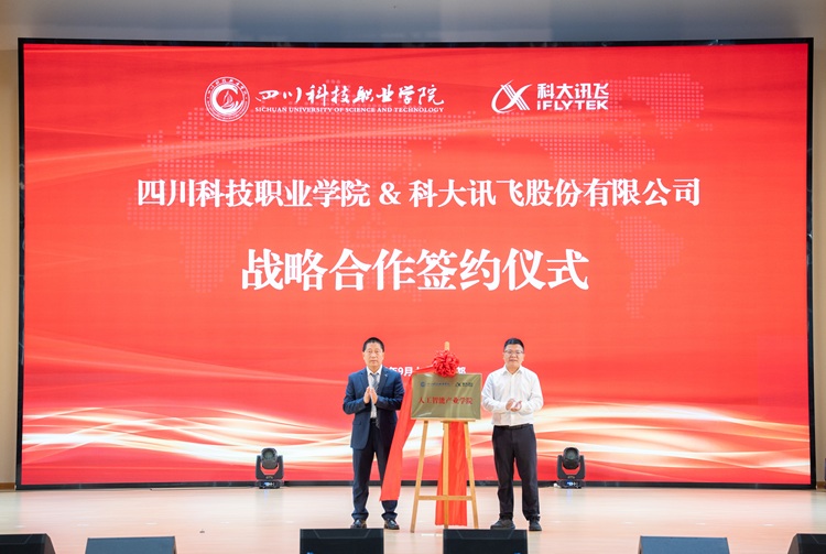 9月19日,四川科技职业学院与科大讯飞股份有限公司产教融合签约暨“科大讯飞人工智能产业学院”揭牌仪式在四川科技职业学院天府校区举行。