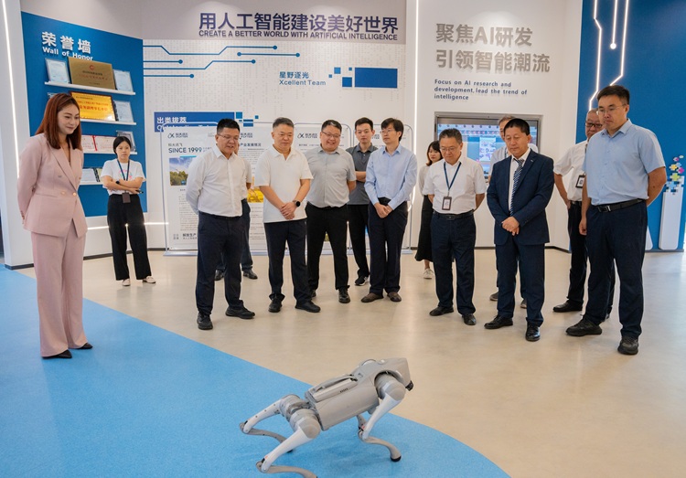 在与会嘉宾的共同见证下,双方代表共同签署合作协议,并通过电子揭牌与机器人实物揭牌的形式,为“科大讯飞人工智能学院”揭牌,象征智慧与科技融合的新起点。现场还展示了科大讯飞多项人工智能产品与应用场景,生动呈现AI技术赋能教育、服务社会的广阔前景。
