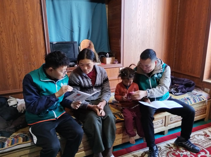 驻村工作队的第一站是村幼儿园。园内18名藏族幼儿整齐端坐,工作队用生动易懂的语言,为孩子们讲解了普通话的发展历程和学习普通话的重要意义。“普通话是我们国家的共同语言,就像一座桥梁,能帮助我们和更多的小朋友、叔叔阿姨交流。”工作队员胡清灵俯身向孩子们解释道。