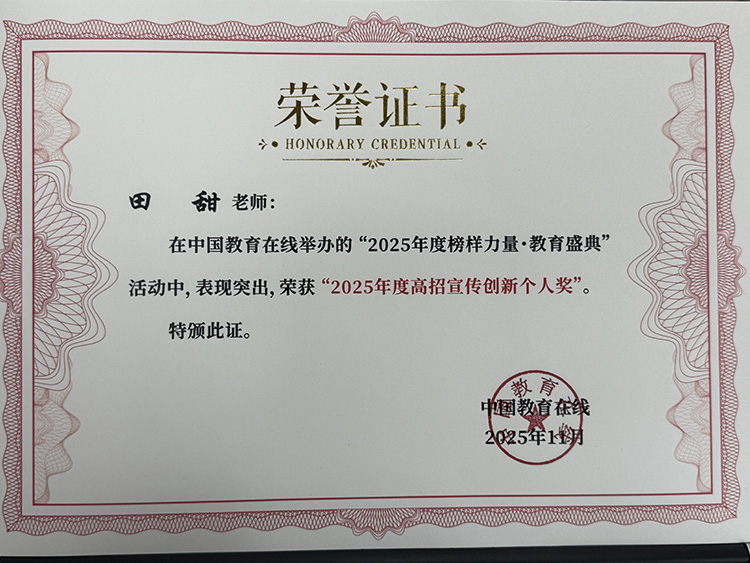 四川护理职业学院田甜老师荣获“2025年度高招宣传创新个人”称号