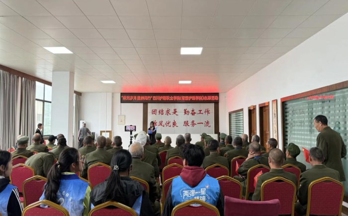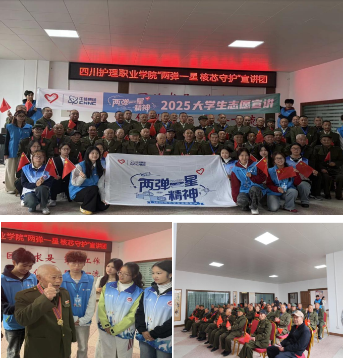 为弘扬“两弹一星”精神、赓续红色血脉,近日,智慧护理学院“核‘芯’守‘护’”宣讲团走进德阳市光荣院开展志愿宣讲活动,为老兵们带去了生动详实的讲解与温情细致的陪伴,丰富了老兵们的精神文化生活。
