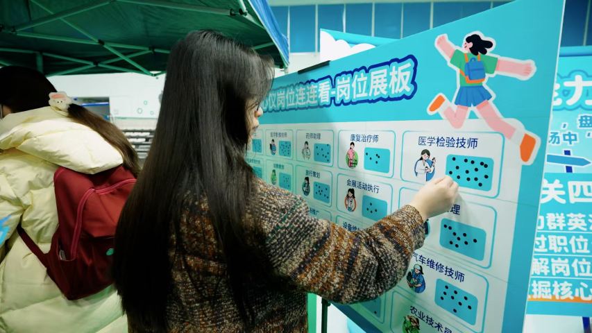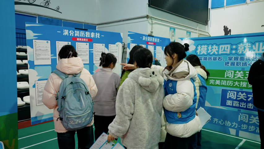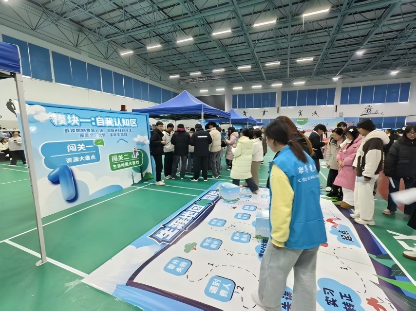 活动过程中,学子们手持活动手册有序参与各环节,在愉悦的闯关体验中逐步梳理个人职业生涯发展路径,进一步了解行业动态与岗位需求,深化就业意识,明确发展方向。