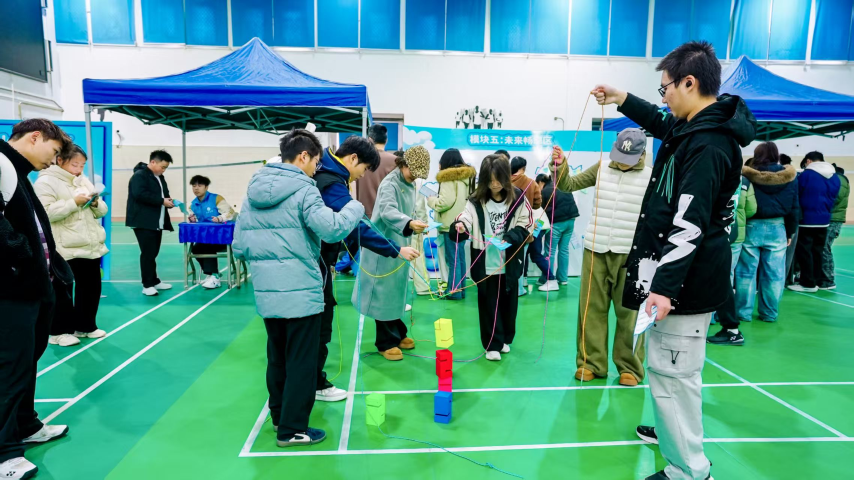 “齐心协力”环节以团队竞赛形式锻炼协作能力,通过游戏化互动帮助学生学会发挥个人优势、凝聚集体力量,培养未来职场必备的团队协作能力。从游戏到职场,“步步高升”不仅搭建了协作桥梁,也点燃了学生的职业发展热情。多名学生表示,游戏中的“失败-复盘-再尝试”过程,加深了他们对压力管理和沟通技巧的理解。