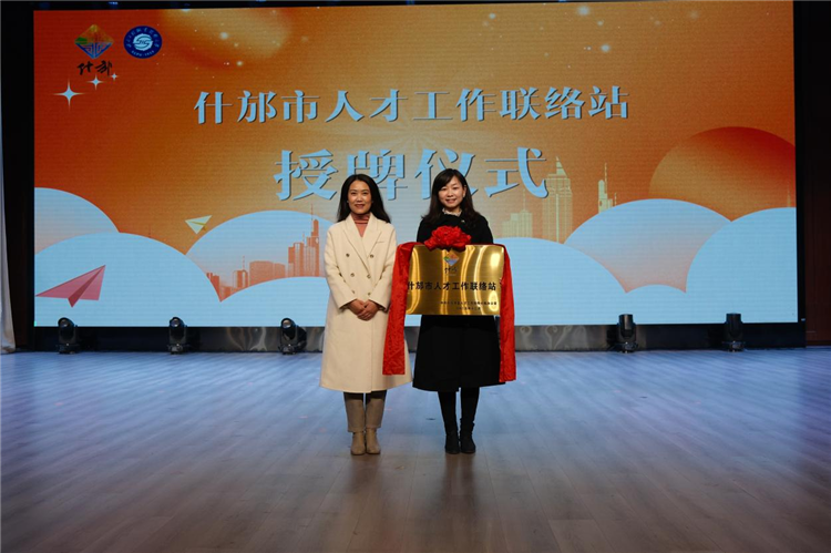 什邡市人社局主要负责同志为四川工程职业技术大学授予“什邡市人才工作联络站”牌匾。