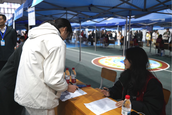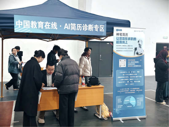 双选会现场设置征兵咨询、就业指导、AI简历门诊和政策咨询等专区,就业专家和行业专家为毕业生提供一对一服务,帮助学生提升就业竞争力。学生手拿简历在现场与老师进行沟通交流,针对就业方面的疑问进行讨论。