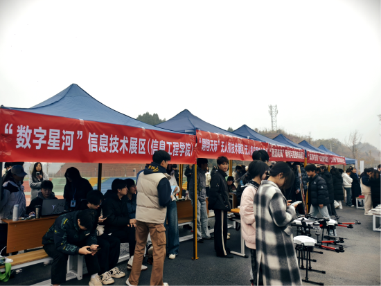 双选会会场外,学校专门设立了二级学院技术展示区。无人机应用、网络直播模拟、交通建筑模型等体现各学院专业特色的技术成果,在现场向用人单位进行了集中展示。