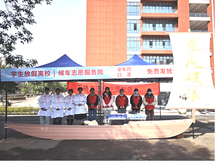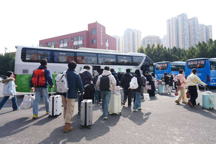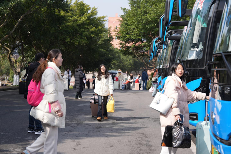 为提升学生离校便捷度,学校精心调度校园免费摆渡车,运行路线覆盖东校门、正校门、公寓广场等核心区域,实现“点对点”便捷接驳。为规范校内交通秩序,避免因车辆拥堵影响学生离校,学校明确划定公寓广场为专用停车、发车区域,有效保障了离校高峰期校内交通顺畅有序。此外,在各乘车点免费为学生提供晕车药、口罩等应急物资,细致周到的安排让寒冬返乡路暖意融融。