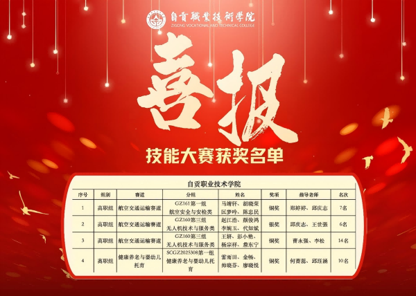 近日,2025年四川省职业院校技能大赛各赛道赛事圆满落幕,自贡职业技术学院参赛师生奋勇拼搏、捷报频传,在航空交通运输、健康养老与婴幼儿托育两大重点赛道脱颖而出,一举斩获银奖1项、铜奖3项。