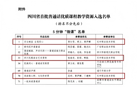 喜报!巴中职业技术学院三个课程资源入选四川省首批普通话优质课程教学资源名单