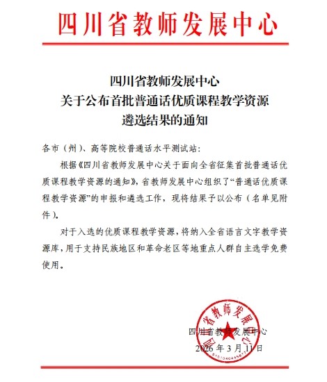 本次遴选旨在建设全省语言文字教学资源库,入选资源将用于支持民族地区和革命老区等重点人群自主选学。学校入选作品包括:易仕雪、胡卫、黄伊娜老师主讲的《舌尖破茧 言筑同心》;张海连、彭琼、鲜航老师主讲的《四川民歌语言艺术赏析》;吴玲、黄伊娜、丁建林老师主讲的《双语架心桥,文化传世界》。三个课程资源均入选5分钟“微课”名单,体现了学校在语言文字教学创新与民族文化融合方面的积极成效。