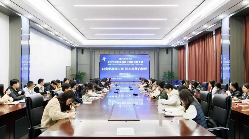 为全面总结2025年四川省职业院校技能大赛参赛工作经验、查找不足,进一步推动“以赛促教、以赛促学、以赛促改”走深走实,遂宁职业学院近日召开技能大赛赛后总结会。学校相关领导、教务处、各教学单位负责人及参赛师生代表齐聚一堂,共同总结参赛经历,探讨未来竞赛工作方向。