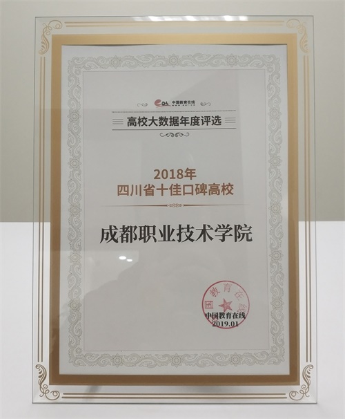 近日,2018年中国教育在线高校大数据年度评选榜单盛大发布,成都职业技术学院荣获“2018年四川省十佳口碑高校”奖项。