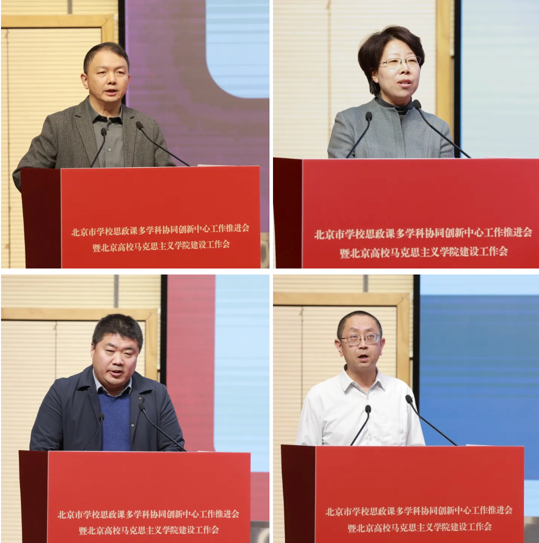 会上,清华大学马院院长朱安东、中国人民大学马院院长冯秀军、中国社会科学院大学马院执行院长王维国、北京航空航天大学马院党委书记高宁分别从课程建设、大中小学思政课一体化、学科建设、队伍建设等方面介绍了马院建设典型经验。