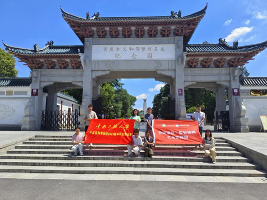 值此热烈庆祝中国共产党成立104周年之际,恰逢深入贯彻中央八项规定精神学习教育的深化巩固阶段,2025年7月2日,中南民族大学计算机学院精心组建一支由6名新发展党员与1名发展对象构成的“党旗领航 数智报国”实践团赴红安县开展暑假社会实践,旨在通过沉浸式红色研学,引导青年大学生党员赓续中国共产党人的精神血脉,了解革命事迹,聆听革命故事,感悟红安革命老区的人文底蕴和红色文化,传承红色基因,弘扬优良作风,在实践中领悟大别山精神,铸牢中华民族共同体意识。学院党建工作联络人、2023级本科生辅导员沈易军、2024级本科生辅导员黄炎垒带队参加社会实践。