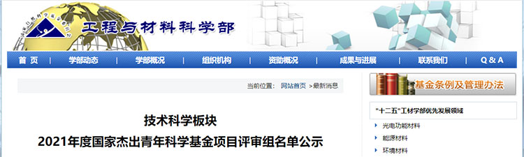 7月13日,国家自然科学基金委员会工程与材料科学部公示了技术科学板块2021年度国家杰出青年科学基金项目评审组名单,共206人入选,公示期为2021年07月12日至2021年07月19日。