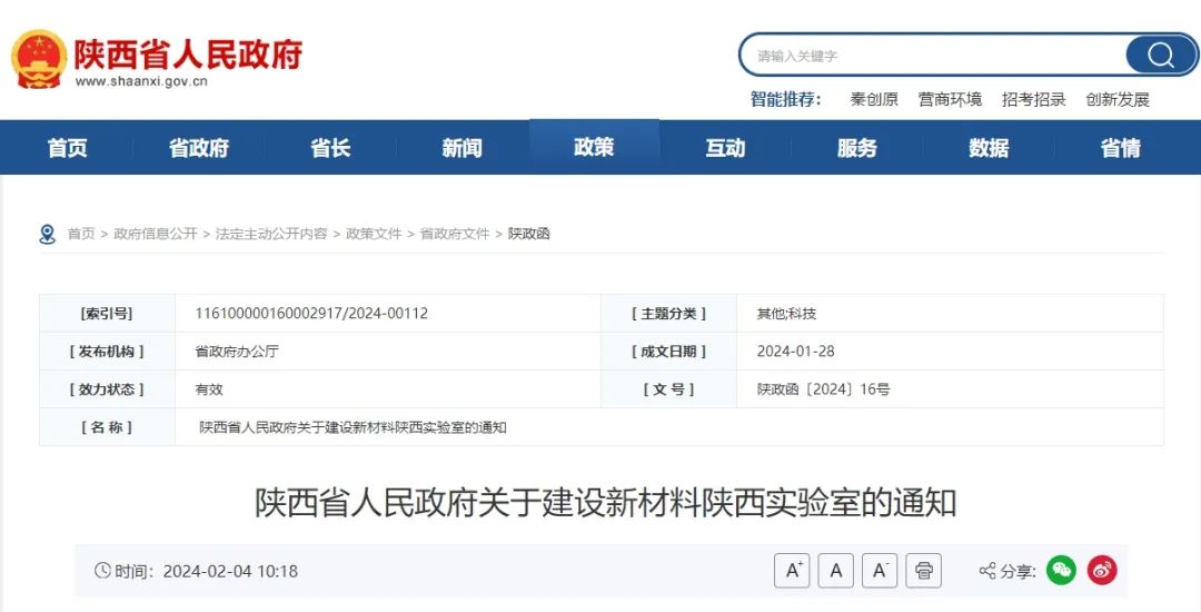 近日,陕西省人民政府发布《关于建设新材料陕西实验室的通知》,决定建设新材料陕西实验室,开展新材料的前沿探索、颠覆性技术创新和关键核心技术攻关,打造新材料产业的原创技术策源地,加速新材料科技创新与产业深度融合,培育和发展综合实力国内领先的新材料产业集群,加快形成新质生产力,推动全省新材料领域创新优势转化为产业发展胜势,助力秦创原创新驱动平台和西安“双中心”建设。