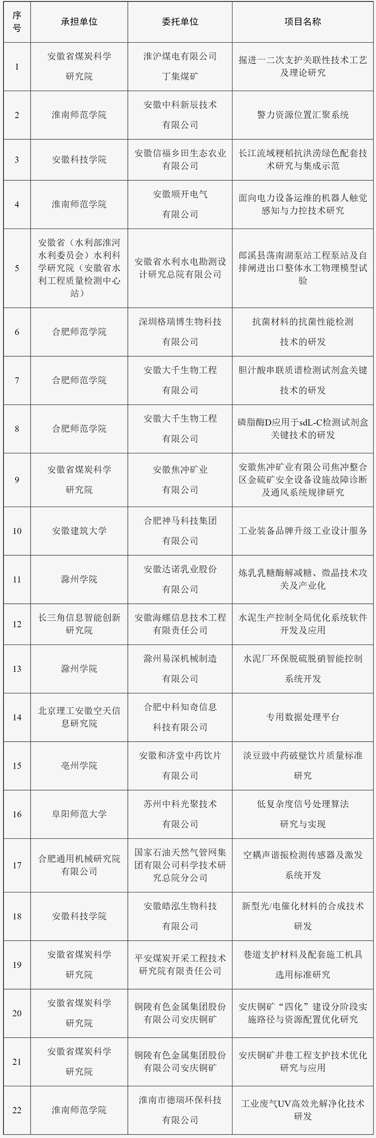 本次计划共安排项目22项,视同省重点研究与开发计划项目,请相关项目单位通知项目负责人登录安徽省科技厅门户网站—安徽科技大脑—办事大厅—高校科研院所横向课题备案模块,在线打印横向课题备案证书。