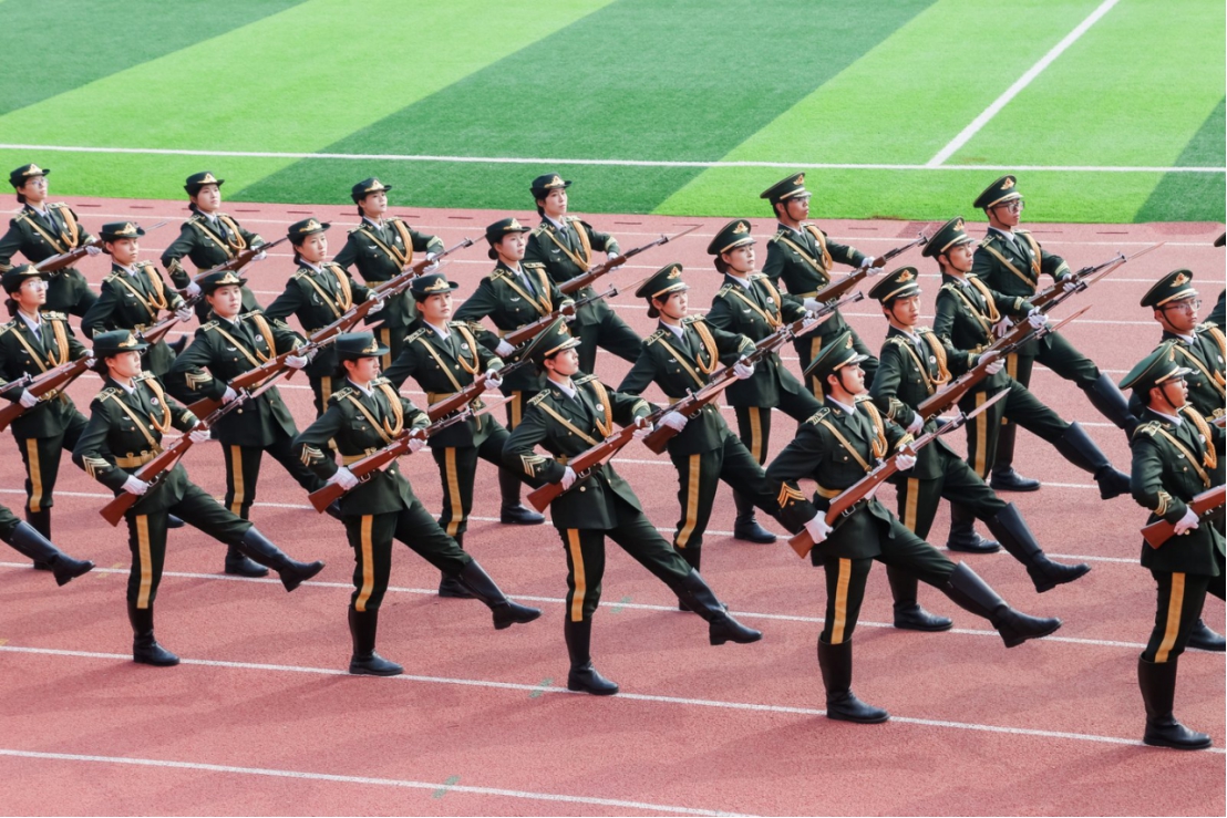 天津工业大学2025级本科生展示的刺杀操、天津财经大学珠江学院学生带来的综合战术及旗语展示,天津市南开区东方小学学生展示的军体拳等特色军事项目,彰显出天津市学生蓬勃的朝气与活力,赢得了现场观众的阵阵掌声,是一堂富有成效的爱国主义教育实践课。展演在全场师生齐声高唱《歌唱祖国》的激昂旋律中落下帷幕。
