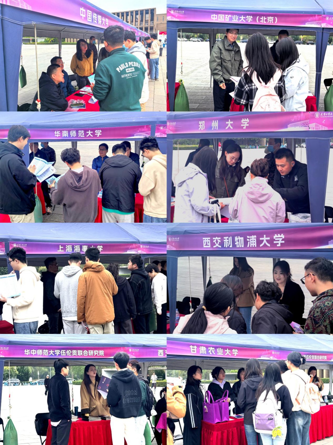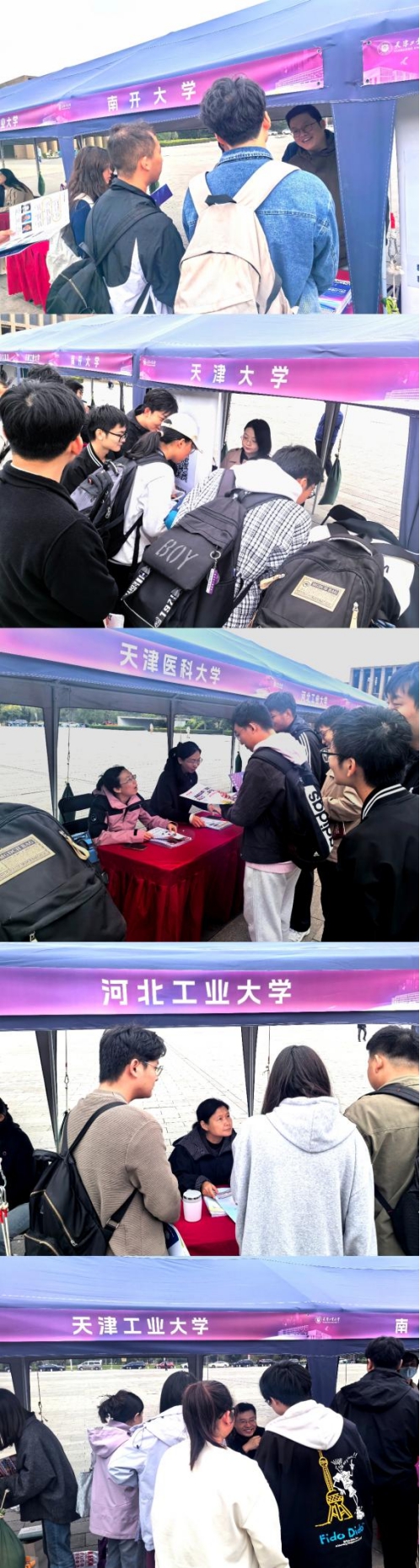 活动现场,中国矿业大学(北京)、中国传媒大学、郑州大学、华南师范大学、上海海事大学、甘肃农业大学、华中师范大学伍伦贡联合研究院、西交利物浦大学、天津大学、南开大学、天津医科大学、河北工业大学、天津工业大学等十余所研招单位的展位前人头攒动。各招生单位负责老师与考生亲切交谈,就院校特色、培养模式、招生政策等问题进行详细解答,现场交流氛围热烈。各单位招生负责人强调,新阶段研究生招生工作将严格秉持科学选拔、公平公正的基本原则,持续优化人才选拔机制,结合学科特点与人才培养目标,进一步完善招生工作体系,为考生提供准确、清晰的报考指引。
