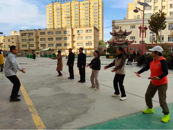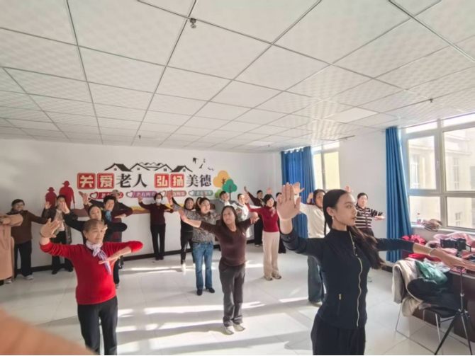 “津和老年书院”借鉴天津优质老年大学办学模式,有效弥补了当地老年文化教育资源的不足;志愿服务队的组建则为书院运营注入了稳定的青年力量,共同构建起“资源支撑+人力保障”的养老服务机制。揭牌仪式后,书院随即启动首期课程。支教团结合老人兴趣与需求,开设“岁月之声”合唱班、“天山韵舞”舞蹈班和“养生保健”运动班。课堂上,支教团成员耐心讲解、细致示范,老人们积极参与,现场氛围温馨融洽。据悉,书院后续还将陆续推出手工、书法、心理健康、法律普及及智能设备应用等课程,进一步丰富老年人的精神文化生活,助力实现“老有所学、老有所乐”。