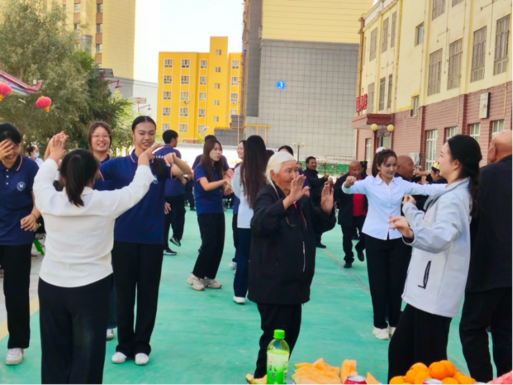 重阳佳节到来之际,天津师范大学赴新疆和田地区实习支教团走进当地康逸养老中心,开展以“共建基地、组建队伍、开班授课、重阳送暖”为主题的系列敬老活动,为老人们送去来自天津的关怀与温暖,传递民族团结的真挚情谊。