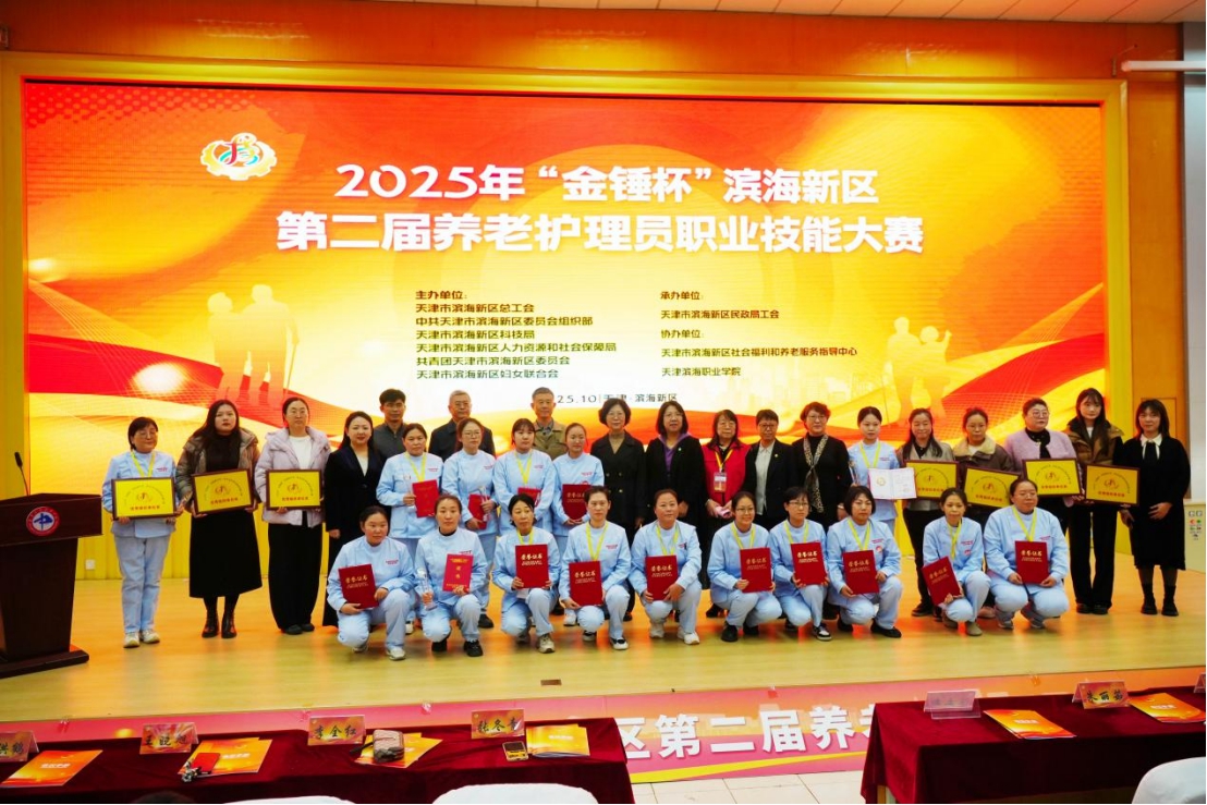 10月24-25日,2025年“金锤杯”滨海新区第二届养老护理员职业技能大赛在天津滨海职业学院成功举办。大赛由天津市滨海新区总工会、中共天津市滨海新区委员会组织部、天津市滨海新区科技局、天津市滨海新区人力资源和社会保障局、共青团天津市滨海新区委员会、天津市滨海新区妇女联合会联合主办,天津市滨海新区民政局工会承办,天津市滨海新区社会福利和养老服务指导中心和天津滨海职业学院协办。