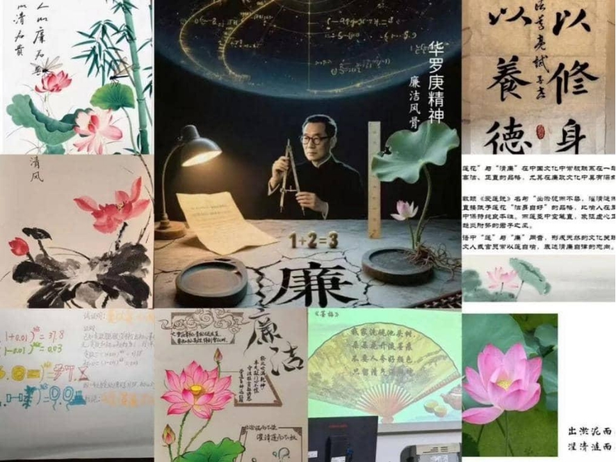 基础科学学院各教师党支部结合学科特色,开展清廉文化主题党日活动,党员们通过将传统文化、现代科技与廉政教育深度融合,以讲述历史人物故事、书法、绘画、AI视频创作等创意形式构建了“可听、可视、可感、可参与”的立体化教育模式,形成了一场别开生面的廉政教育课。其中,数学党支部探索“数学+廉洁”特色路径,通过数学题的计算解读廉洁内涵,以“华罗庚精神”展示廉洁风骨。化学党支部探索“化学+廉洁”教育模式,开展“清风化语 元素倡廉”主题党日活动,用化学元素周期表解读廉洁格言。例如,碳元素高温高压不变形喻坚定立场,拒腐蚀如聚四氯乙烯,守清廉如石英晶体,以化学公式解读《石灰吟》等等,参与党员纷纷表示,这种创新形式让廉政教育更接地气、更入人心。