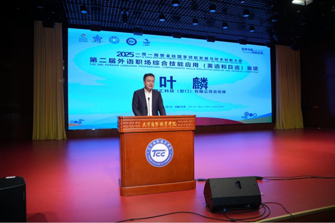 中语智汇科技(厦门)有限公司总经理叶麟在开幕式上表示,作为本次大赛的联合承办单位,中语智汇始终致力于以科技赋能外语教育,以创新驱动能力培养。此次大赛采用的“外语职场综合技能赛训平台”,将真实商务场景融入竞赛,借助智能化技术手段,推动“学、练、赛、创”一体化育人模式,在实战中锤炼专业素养,在挑战中拓宽职业视野,为学生提供了从理论到实战的全链路支持。