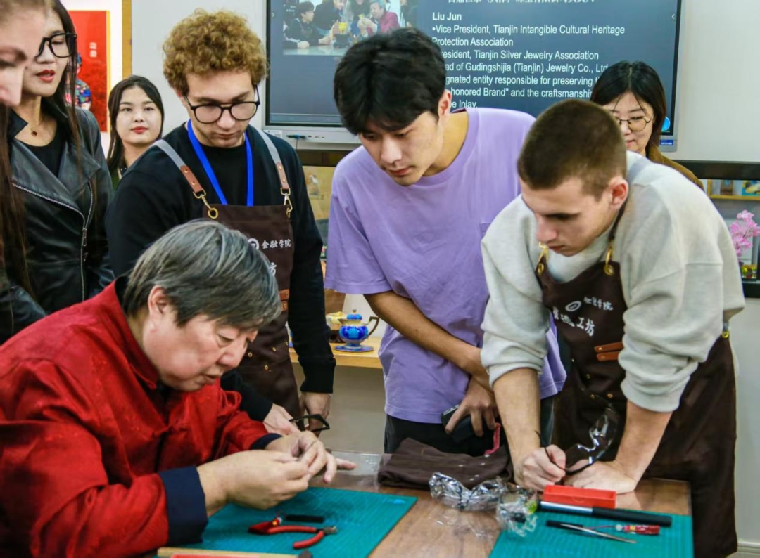 多彩商职展画卷,文化交流意正浓。11月6日,作为意大利约布斯学院AI艺术设计培训营的特色实践环节,一场以“指尖非遗”为主题的文化体验活动在天津商务职业学院金融学院非遗工坊温情上演。意方学子与学校师生携手,通过津派花丝制作技艺的沉浸式学习,共同感受津门传统工艺的匠心独运,开启了一场跨越山海的文明交流。