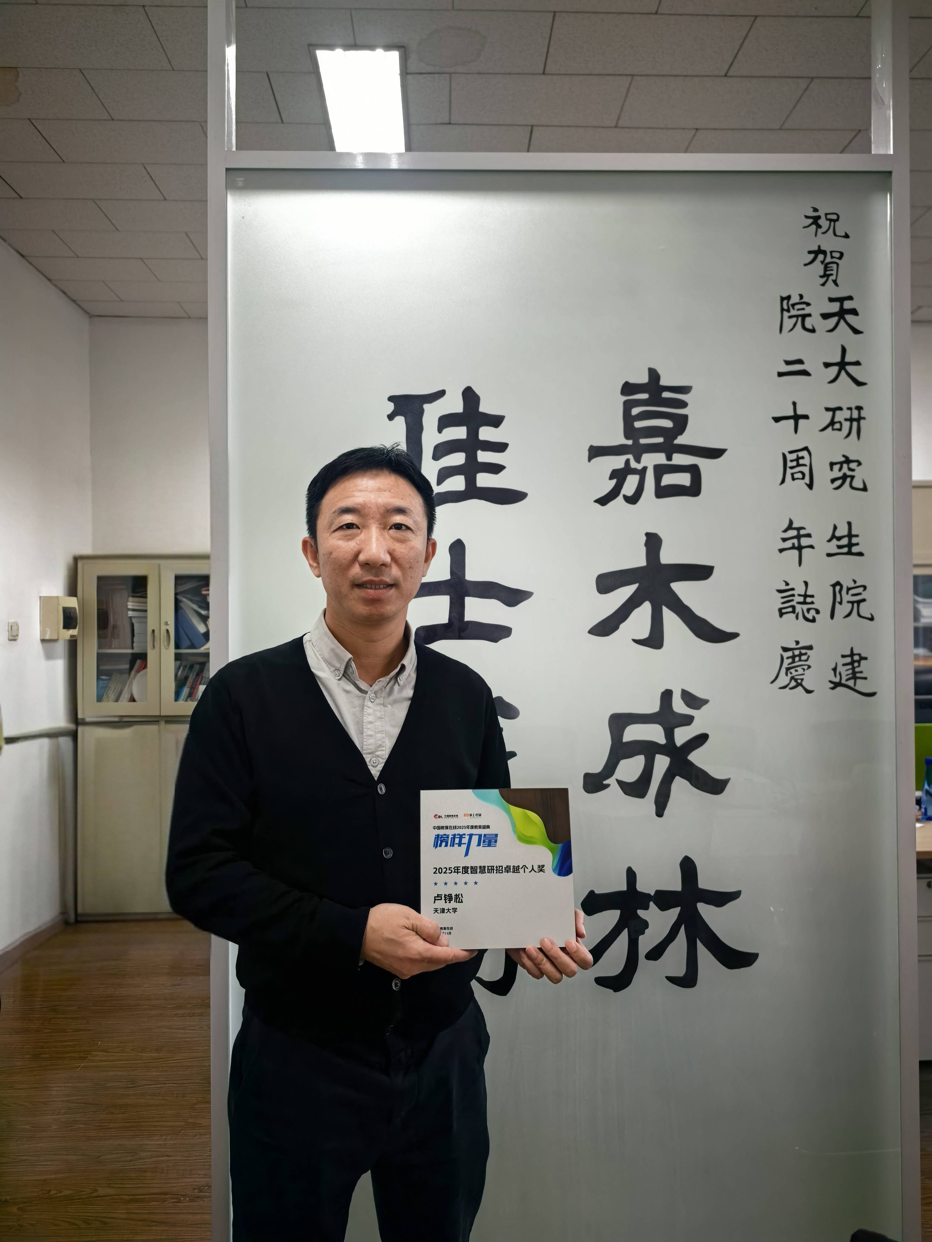 近日,中国教育在线“榜样力量·2025年度教育盛典”优秀案例名单公布。天津大学卢铮松老师凭借极具创新性与前瞻性的招生宣传策略,以及扎实的宣传执行实力,获评“2025年度智慧研招卓越个人”称号。
