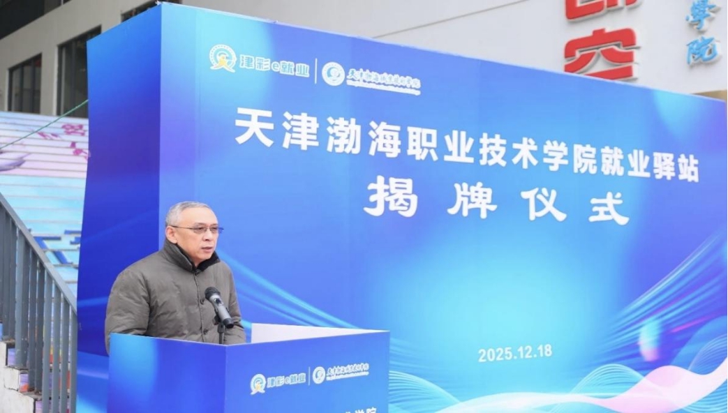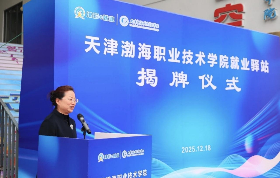 为学习贯彻党的二十届四中全会精神,落实国家及天津市关于就业工作的部署要求,培育“津彩e就业”服务品牌,搭建学生就业服务平台,促进高质量充分就业,展示学校就业工作成果,天津渤海职业技术学院于12月18日举办就业驿站启动仪式。天津市人社局党组成员、副局长杜全胜,天津市北辰区副区长、区政府党组成员杨占雷,中国北方人才市场总裁田海嵩,天津渤海化工集团有限责任公司党委副书记王星炜,天津市人社局就业促进处处长于洋,中国天津人力资源开发服务中心副主任周淳,天津市教育委员会学生处副处长石兵,北辰区人社局局长魏卉,天津渤海化工集团有限责任公司人力资源部部长刘洋,学院党委书记魏炳举,学院党委副书记、院长花玉香出席了此次活动,天津市人社局就业促进处、中国北方人才市场中天人力中心、北辰区人社局以及学院就业办公室、各二级学院相关负责人参加了此次活动。