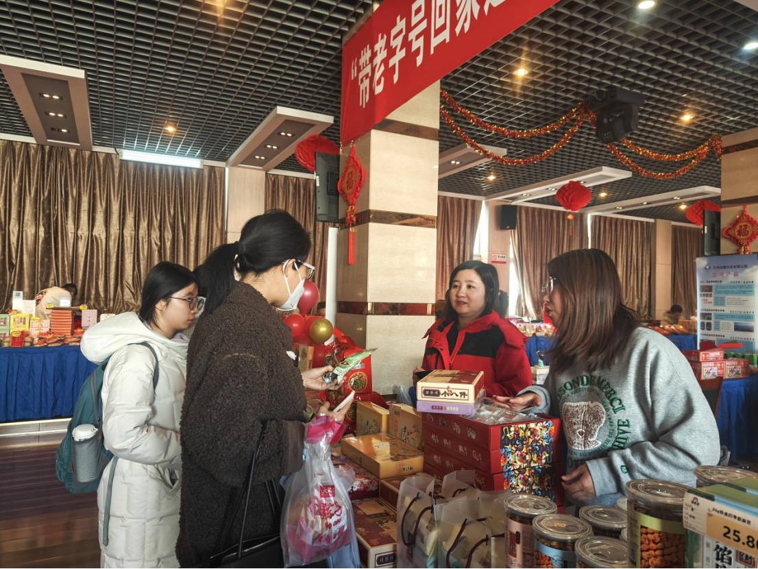 祥禾饽饽铺的广西云龙包装纸、桂发祥十八街麻花的非遗制作技艺、山海关的老照片明信片…… 校园的“老字号年货大集”现场人头攒动。12月24日至25日,天津商业大学在工会310会议室举办“带老字号回家过年”专场活动。校领导班子成员莅临活动现场,与参展企业亲切交谈。