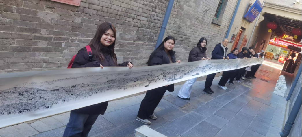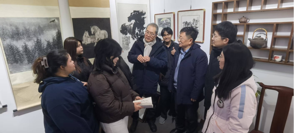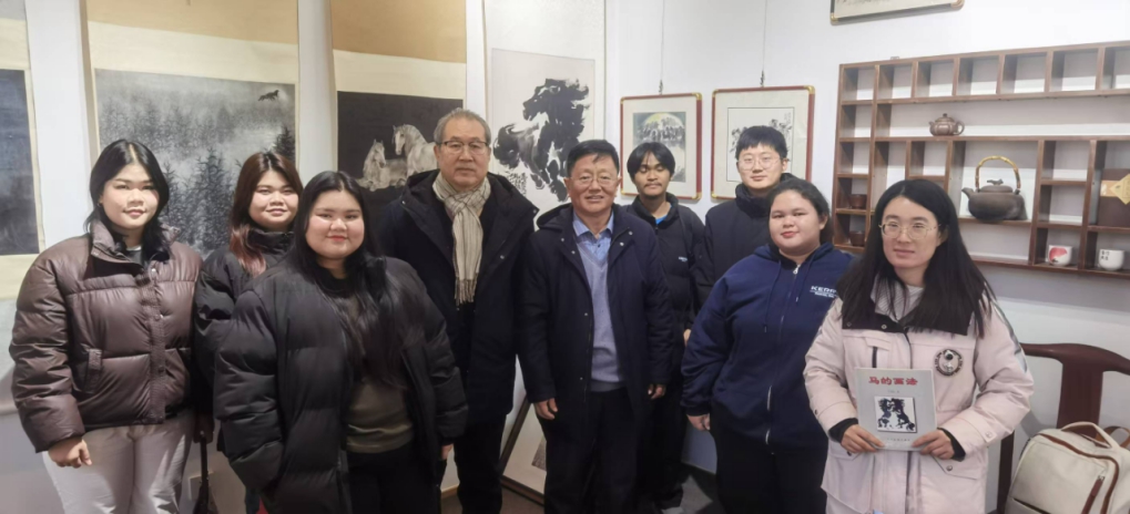 活动尾声,宫春虎先生为学院师生赠送墨宝,以马画作品传递对师生们的新春祝福与殷切期许。全体参与人员与宫春虎先生合影留念,为本次参观活动画上圆满句号。泰国留学生芳欣表示:“此次参观交流活动让我们感受到了中华传统文化的博大精深,当我将这些画作给我的泰国朋友展示时,他们都深感震撼并希望有机会也能亲身感受中国文化的魅力。”