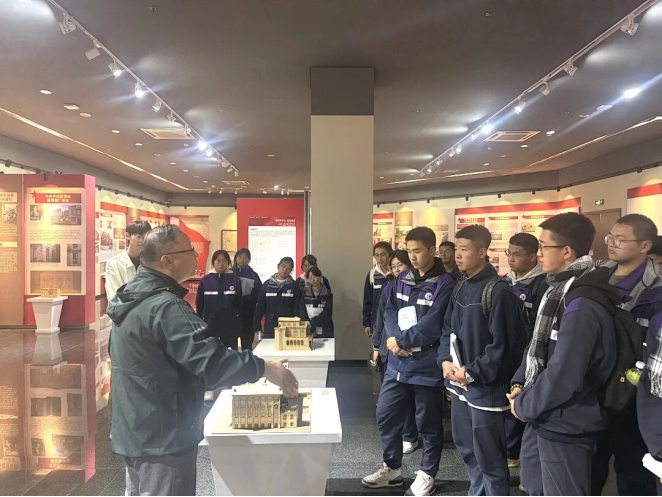 访学首站聚焦红色传承,师生们走进天津城建大学革命丰碑展馆,通过史料陈列与实物展示,配合专业讲解,革命历史的画卷徐徐展开。讲解教师结合学校校史中的红色基因,深入阐释了学校服务国家建设的使命担当,引导青少年厚植家国情怀。