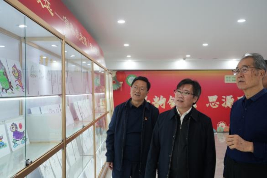 李鑫、宋涛相继莅临新实验楼画作展示区,在宫春虎老师的陪同下近距离品鉴《万马图》《600征程图》等佳作。两位领导对作品中9999匹骏马的灵动笔触、深厚文化底蕴赞不绝口,围绕“艺术作品如何赋能思政教育”“中华优秀传统文化与校园文化融合路径”等话题与宫老师展开深入探讨。宫春虎详细解读了画作中“奋进”“坚守”的精神内核,两位领导强调,要以此次活动为契机,让艺术之美与育人之道深度契合,让“马韵精神”“思源文化”浸润师生成长。