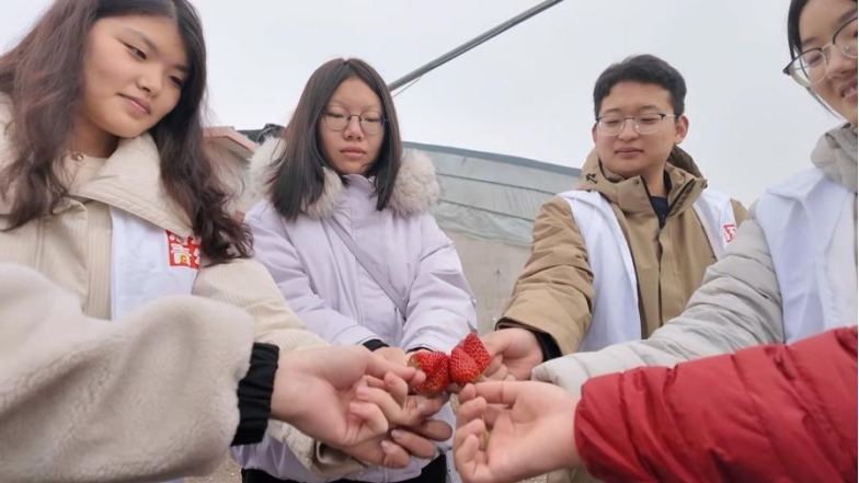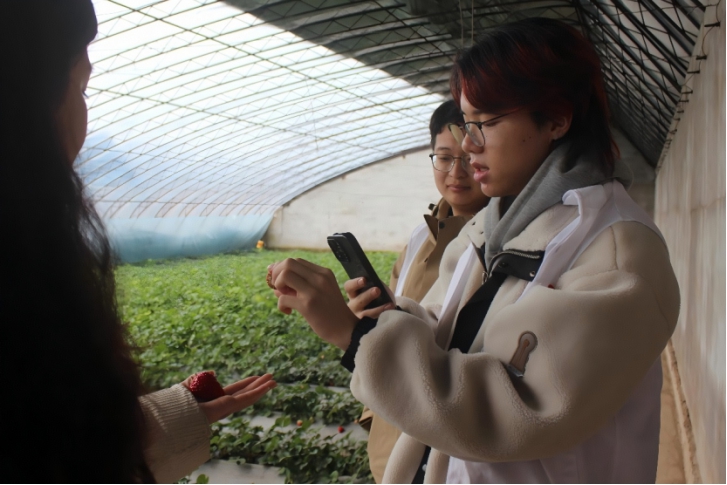 活动中,天津科技大学海洋与环境学院师生团队化身“助农主播”,通过镜头全方位展示十里莓园的生态种植环境与新鲜草莓品质,详细讲解草莓的生长周期、采摘技巧与营养价值,让广大网友直观了解农产品特色。同时,团队还协助农户搭建线上销售渠道,通过线上推广助力优质农产品走出田间,走进市场,切实提升农产品的品牌影响力与市场竞争力。不仅为草莓采摘园带来了线上订单,也让生态种植成为招揽游客的金字招牌。