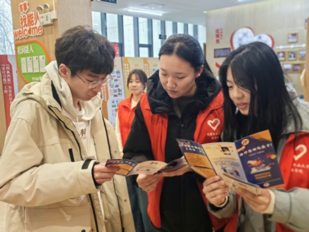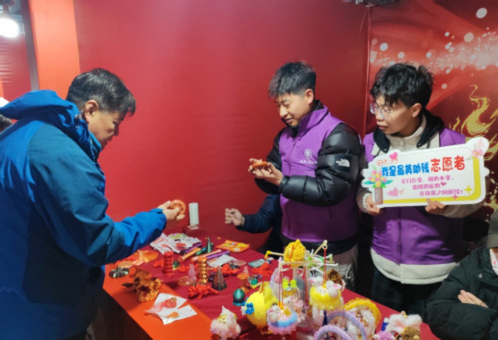 如果说科技志愿服务为乡村注入发展动能,那么另一种形式的奉献则在寒冷中传递着掌心温度。3月2日至4日,河东区二宫公园内,一场特殊的义卖吸引着游人的目光。电气工程学院满天星志愿服务团的20余名学生志愿者,化身“爱心推销员”,热情地向过往市民介绍着摊位上的特殊商品:精美的树叶书签、活灵活现的手工跳蛙、色彩斑斓的编织发饰……近2000件手工艺品,均出自天津津一助残公益服务中心帮扶的残疾人之手。义卖现场,学生志愿者们耐心讲解每件作品背后的故事,那份身残志坚的精神和巧思,深深打动着每一位驻足者。市民们纷纷慷慨解囊,“以购代捐”不仅是对残疾人劳动成果的尊重,更让这个乍暖的初春平添了几分暖意,所筹善款将为更多残疾人朋友送去帮助。