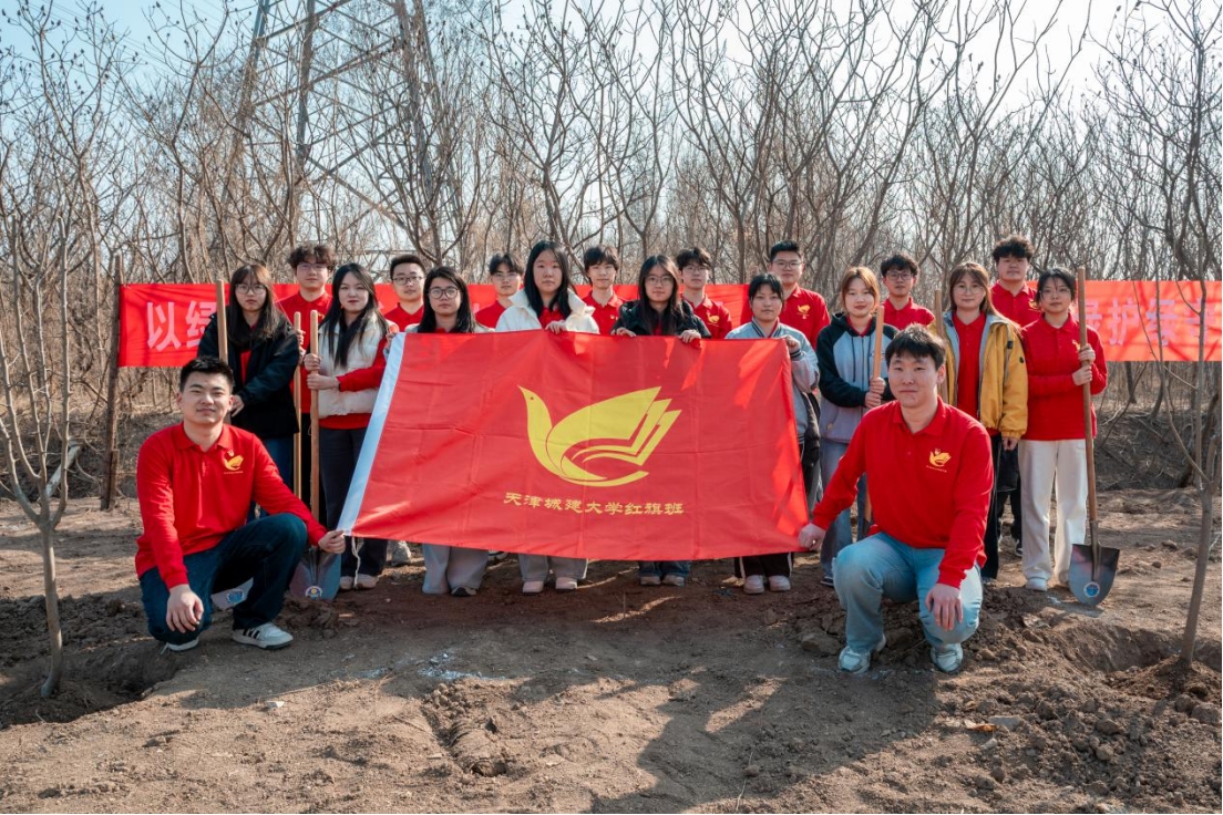 春回大地,万物复苏。在第48个植树节来临之际,天津城建大学组织校“红旗班”学员开展“植绿迎春绽芳华 红旗引领树担当”主题植树活动,以实际行动践行绿色发展理念,传承弘扬红旗精神。