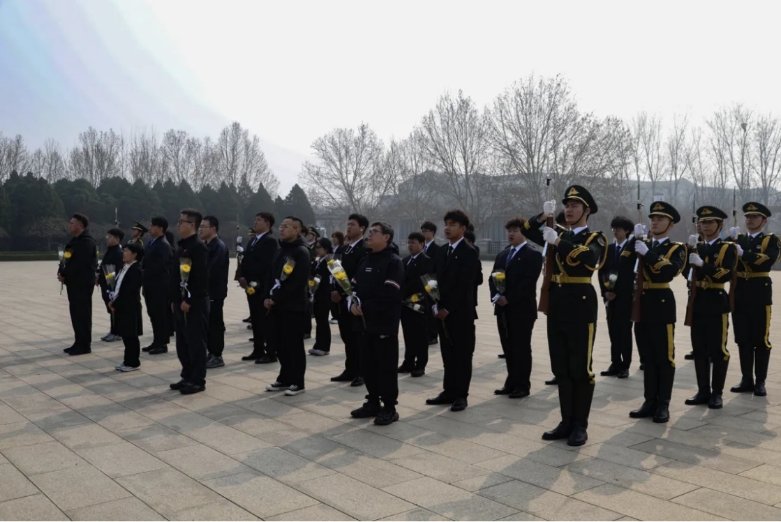 青山埋忠骨,史册载功勋。在纪念红军长征胜利90周年之际,为深切缅怀革命先烈,赓续红色血脉,深化校馆协同育人机制,3月26日上午,学院在天津市烈士陵园庄严举行“追思先烈志 再启长征路”清明祭扫活动,并与陵园方共同举行“思想政治教育实践基地”揭牌共建仪式。学院党委副书记、工会主席、副院长王蕾,天津市烈士陵园党支部书记、主任祁功勋出席,学院党委学生工作部、团委主要负责同志,各二级学院副书记,辅导员代表及学生代表40余人参加。