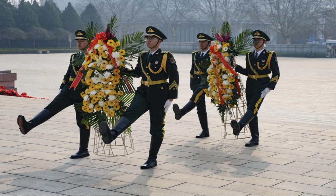 伴随着《献花曲》,学院国旗护卫队迈着铿锵有力的步伐,向烈士纪念碑敬献花篮,师生代表依次敬献鲜花,寄托对英烈的无限哀思。