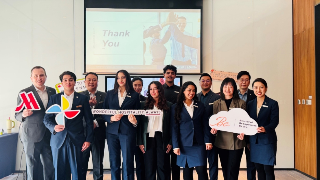 依托校企合作平台,学校积极探索国际学生跨境实践新路径。今年3月,恰逢我市重要外事活动在国家会展中心万豪和福朋喜来登酒店举行,学校遴选的5名摩洛哥学生凭借扎实的英、法双语功底,出色完成了外事接待与翻译服务。此次合作是2023 年6月学校与万豪国际集团共建万豪产业学院后的又一次深度落地,实现了教育链、人才链与产业链的有机衔接。