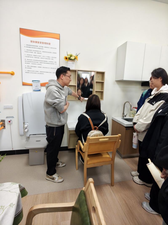 实践次日,教学聚焦核心技能提升。企业导师围绕居家养老服务规范、智慧养老产品应用、长护险业务流程等开展专项授课,将一线岗位技能与行业核心知识精准传授;师生同步走进长护险定点护理站,沉浸式观摩服务全流程、与岗位骨干面对面交流,切实把理论知识转化为实操能力,有效提升岗位适配度与职业素养。