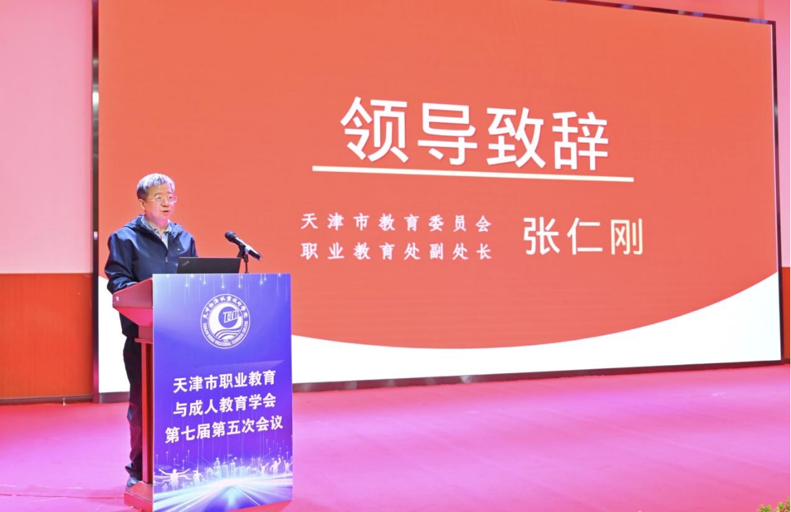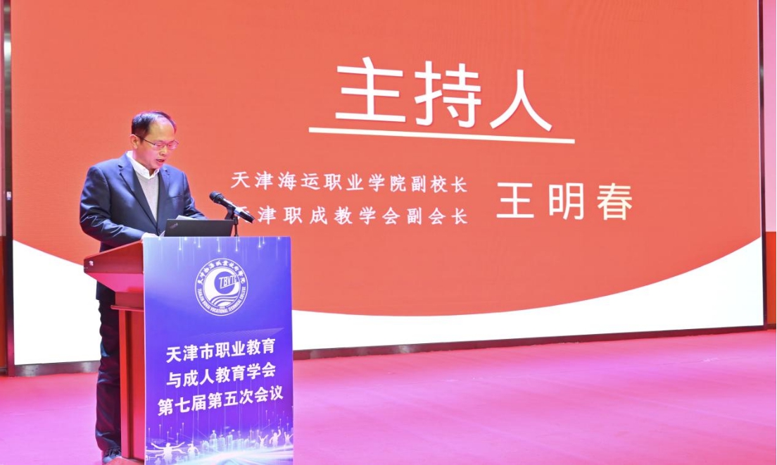 本次会议由天津海运职业学院副院长、天津职成教学会副会长王明春主持。年会开幕式上,天津市教委职教处副处长张仁刚为本次会议致辞。张仁刚处长在讲话中充分肯定了学会在推动职业教育、继续教育改革创新、交流协作方面发挥的重要作用,结合当前教育强国建设的时代要求,分析了职业教育与继续教育面临的新机遇、新挑战,对学会后续工作开展、各院校职教育人提质增效提出殷切期望,强调要坚守育人初心,深化教育教学改革,加快构建现代化职业教育与继续教育体系,为地方经济社会发展培育更多高素质技能人才。