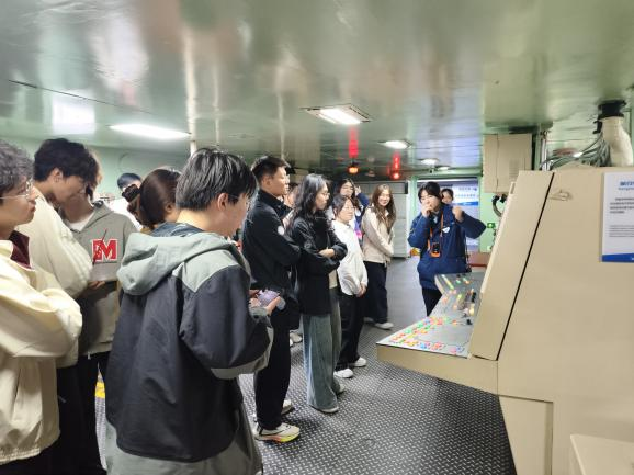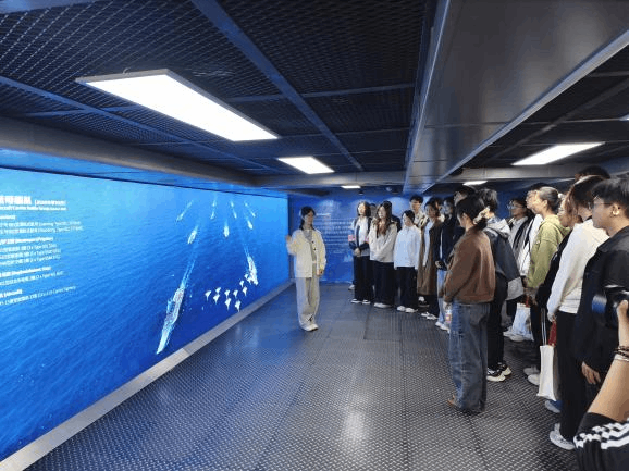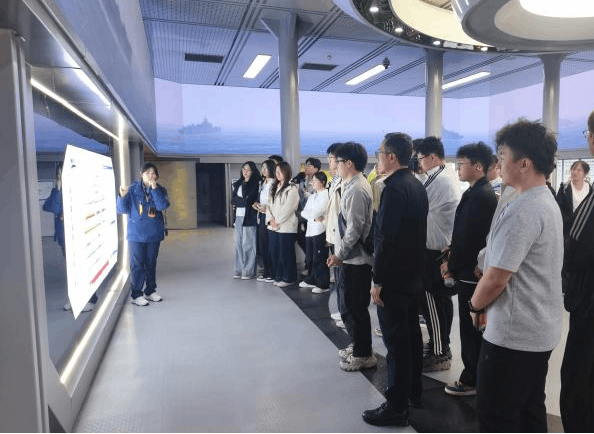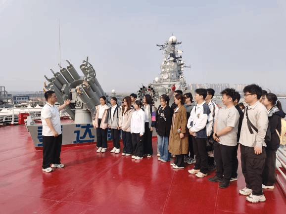 在“基辅号”航母雄伟的钢铁身躯前,师生们驻足凝视。在讲解员的引导下,同学们依次参观了航母的舰岛、甲板、武器系统及内部舱室,深入了解航母的构造与作战功能,切身感受国防现代化建设的重要性。