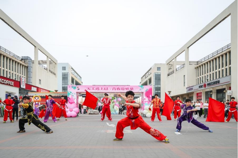 汉服体验区依旧是全场最“出片”的地方。学子们换上圆领袍、马面裙,在古风背景板前拍照留念,三五成群穿行于市集之间,裙裾翩跹,笑语盈盈。“君子六艺”专区内,礼、乐、射、御、书、数轮番上演——拉弓射箭引来阵阵喝彩,端坐抚琴弦音泠泠,书法摊位上墨迹未干的笔迹缓缓洇开。天津霍元甲学校的少年们刚劲有力,拳风猎猎;艺缘舞蹈团以《市井欢歌》的舞蹈,将古代市井生活的烟火气演绎得惟妙惟肖。当春晚歌曲《立春》的旋律在广场上响起时,不少师生轻声哼唱,传统与现代悄然交融。
