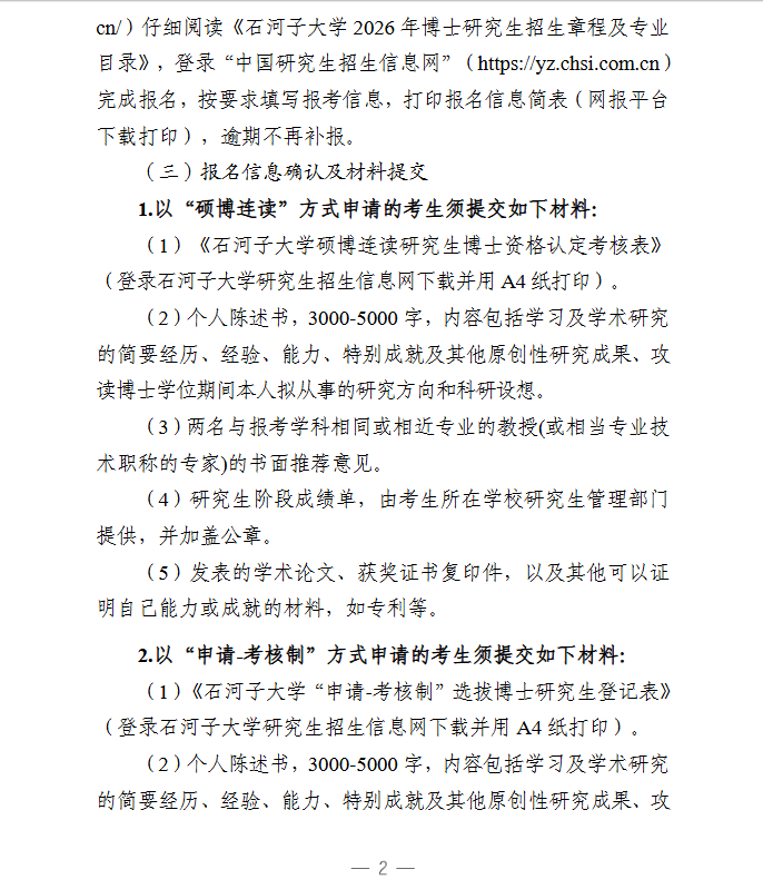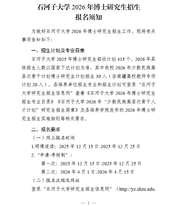 石河子大学2026年博士研究生招生报名须知