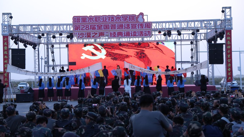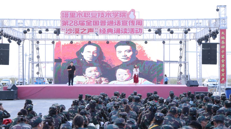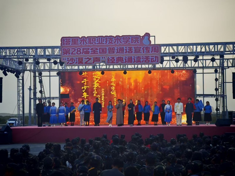 为深入落实全国第28届推广普通话宣传周“加大国家通用语言文字推广力度,促进铸牢中华民族共同体意识”的核心要求,近日,塔里木职业技术学院基础教学部精心策划并举办推普周“沙漠之声”经典诵读展演活动。当标准普通话遇见红色记忆,当青春之声汇聚民族力量,一场兼具语言之美与精神力量的文化盛宴,在塔克拉玛干沙漠之门温情启幕。